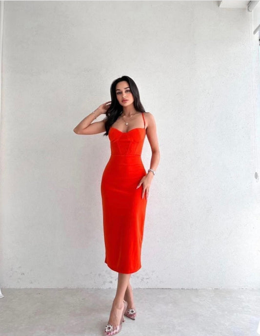 فستان أورانج ميدي يخطف الانظار انسيابي أنيق لافت