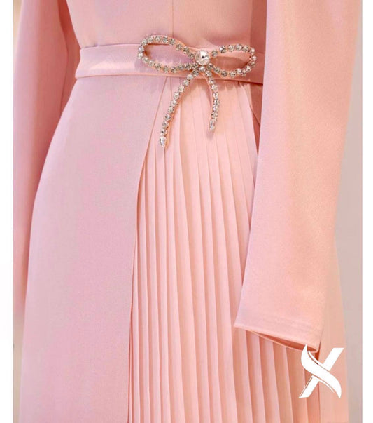 فستان سهرة باللون الزهري البارد بطيات جانبية ناعمة